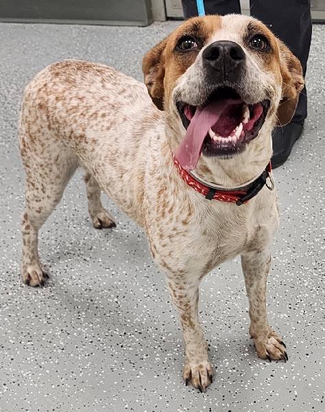Notes: Shelby, Hound Mix, Young, Female, Medium, White, Brown. Vaccinations up to date.